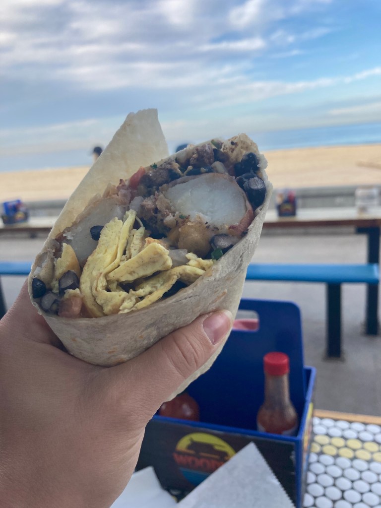 We decided to start the day with our usual walk along the beach but decided to try out a different breakfast spot – Woody’s. There always seems to be a huge line of people waiting for breakfast here, so we figured it had to be good. I love the setup of this place because it’s all open-air seating facing the ocean – talk about breakfast with a view. We ordered a carne asada breakfast burrito to share, and as usual, the burrito was huge, so it was plenty for the two of us. We spent the rest of the day working, and then prepping for my in-laws to fly in for Thanksgiving. They landed that evening, so we met them for dinner and drinks at Waterbar.